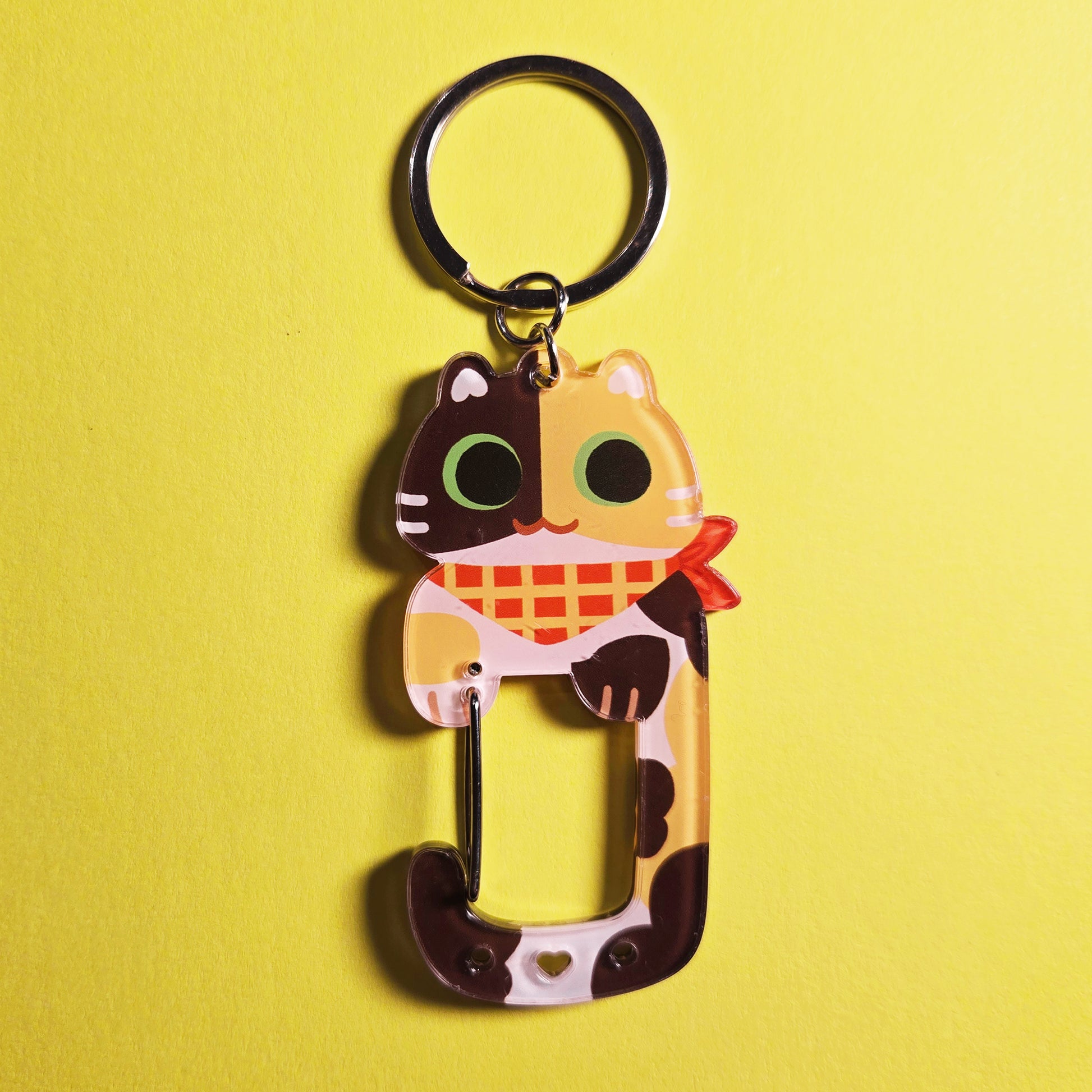 It's a cat! You can put your keys on this carabiner or add attachments to the extra holes located at the bottom. You can use this just as a key ring or move the key ring to the carabiner itself to put anything you want on it! Customize it to your hearts content.